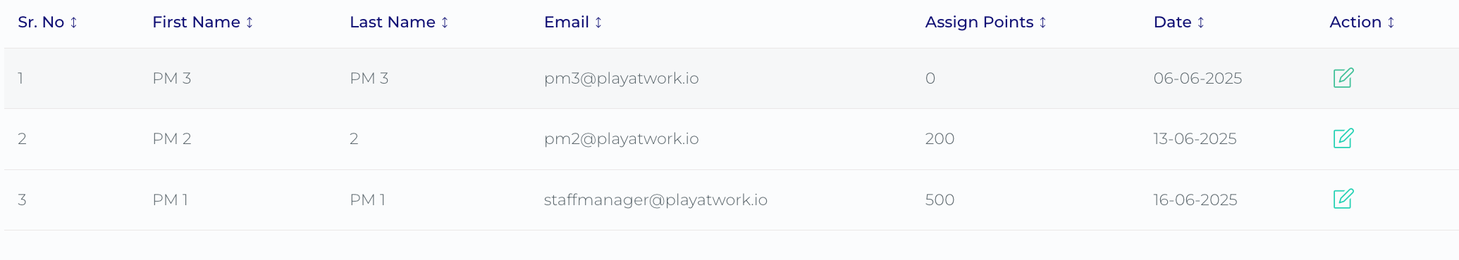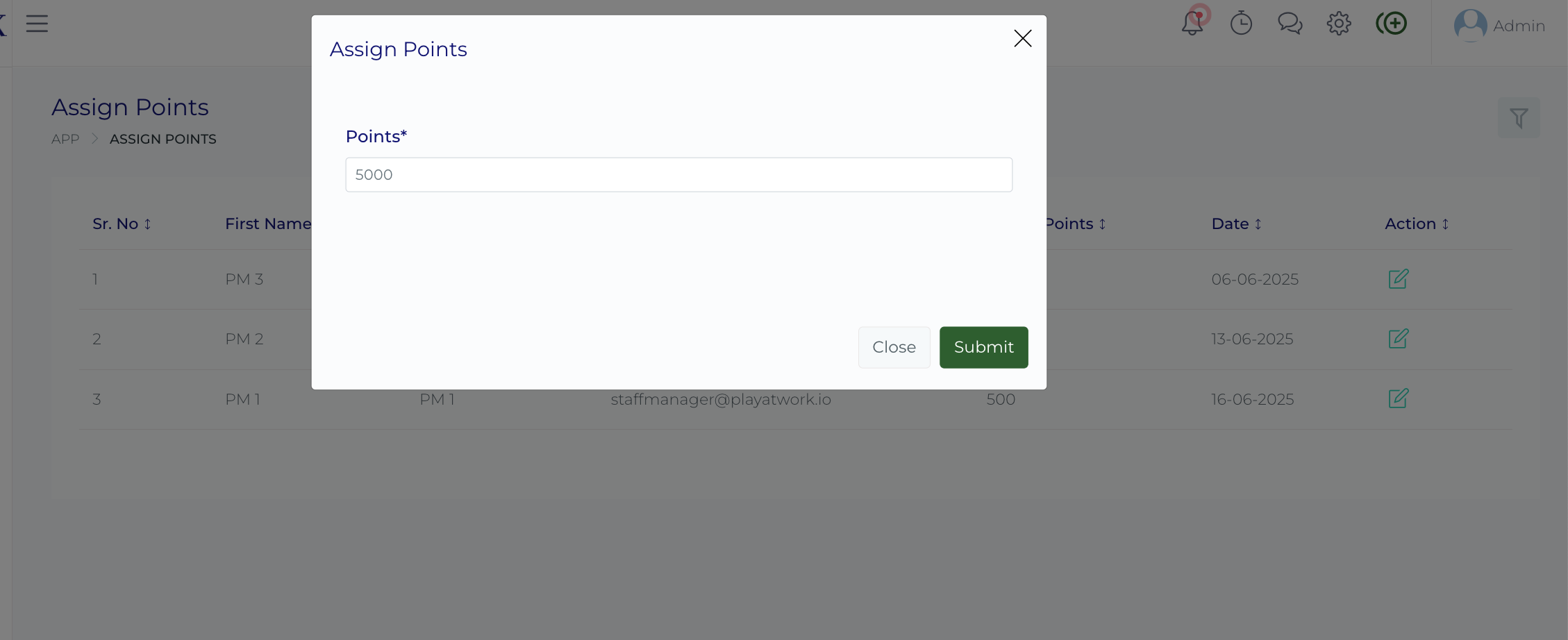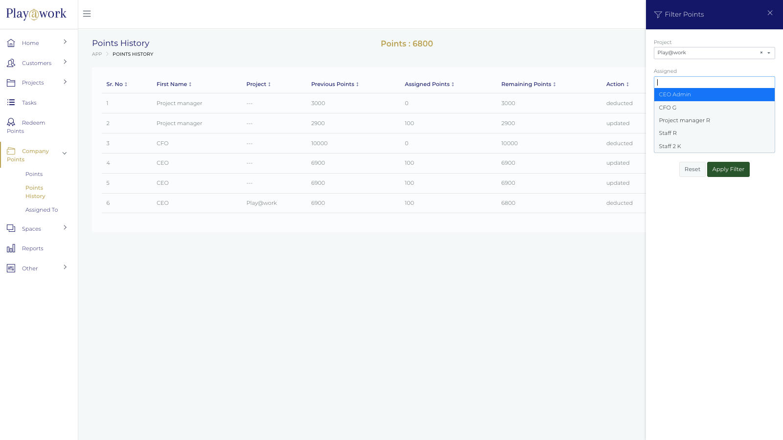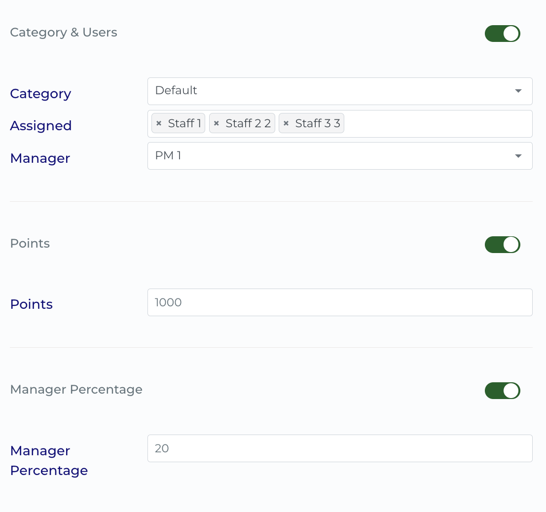 Once points are created, they can be allocated to Project Managers for specific projects.