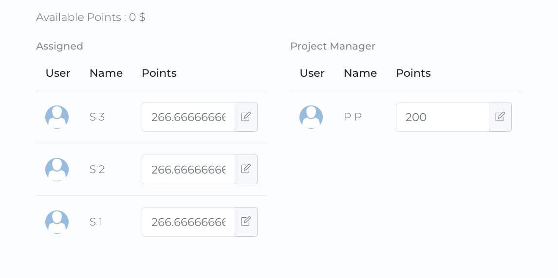Go to the "Assigned to" section to locate the points allocated to the Project Manager. The Project Manager can then redistribute these points among their team members across the projects they manage.