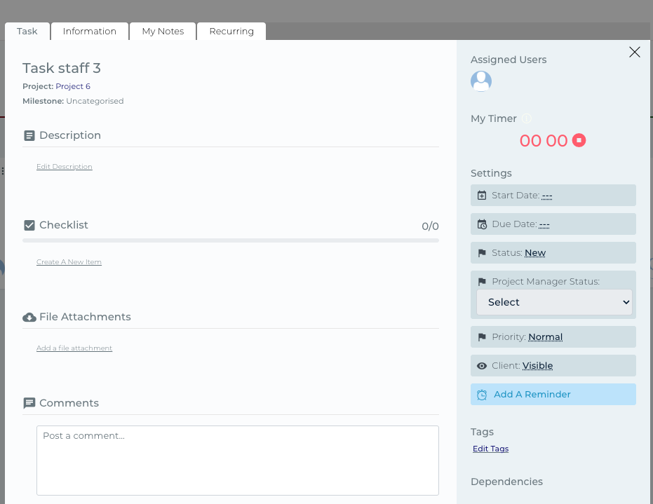 Staff members, also known as executors, are responsible for completing tasks and contributing to projects. Here are the key actions available to staff: