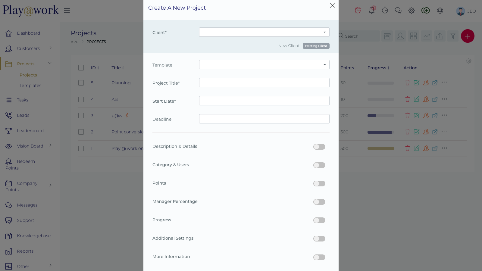 This article introduces the core of project management within the Play at work.io Platform: the central Project List Page.