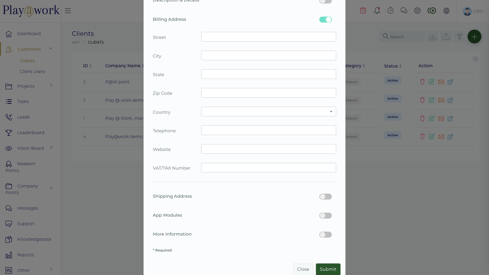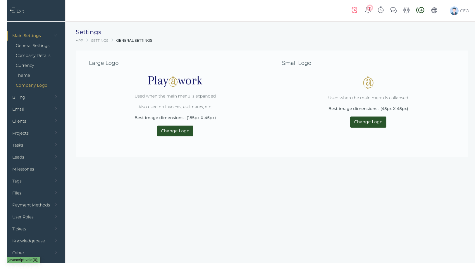 The Client Settings page within the Play at work.io Platform is where Administrators configure the organization-wide behavior for client accounts and the client-facing portal.