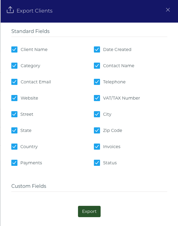 Show in filter panel: Makes the custom field an available option when searching and filtering your list of clients.