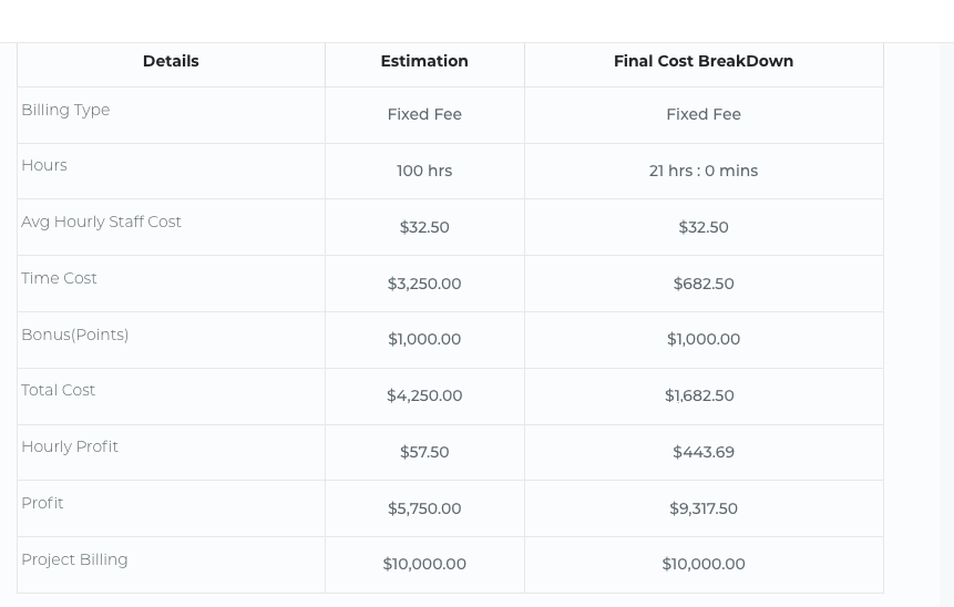 This feature gives you immediate insight into project costs and helps you make smarter decisions based on time and resource allocation.