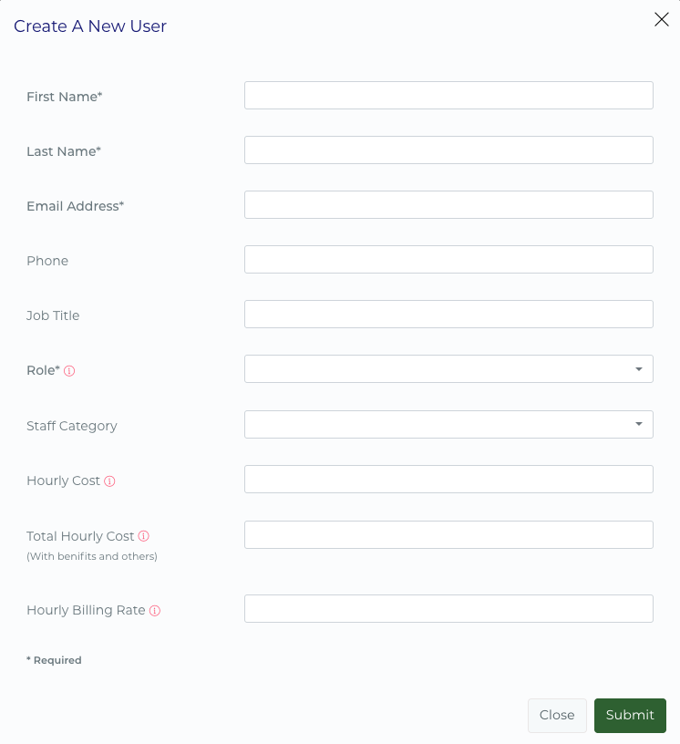In Play at Work, each user can have an hourly cost assigned to their profile, set by an Admin. This rate represents the cost of their time and is automatically factored into any project they are part of.