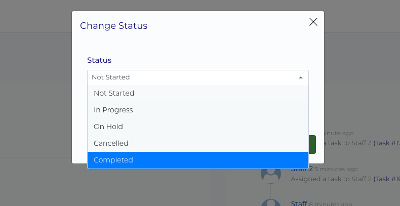 Staff members, also known as executors, are responsible for completing tasks and contributing to projects. Here are the key actions available to staff: